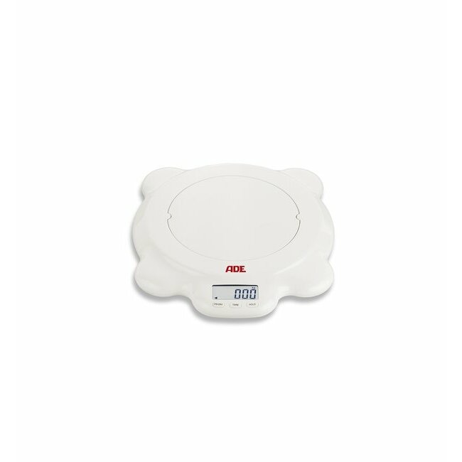The ADE M112800 electronic baby scale is a 2‑in‑1 balance designed to provide precise monitoring of the weight of infants and young children. Thanks to its removable curved tray, it can be transformed in an instant into a floor scale with a capacity of up to 50 kg.