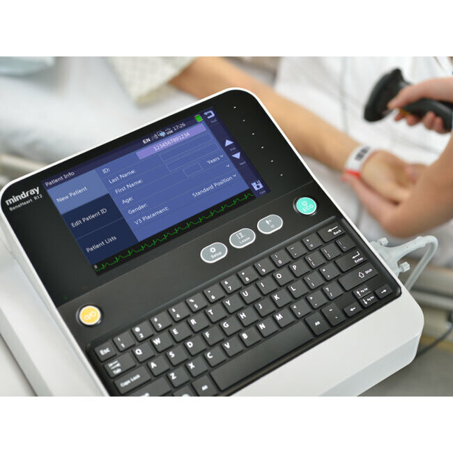 The BeneHeart R12 is a 12-lead electrocardiograph designed to deliver fast, accurate, and reliable diagnosis for both adults and children. Compact and lightweight, it combines an ultra-fast startup in 7 seconds, a high-resolution 8-inch color display, a built-in thermal printer, and advanced connectivity solutions (USB, Ethernet) to simplify clinical workflow.